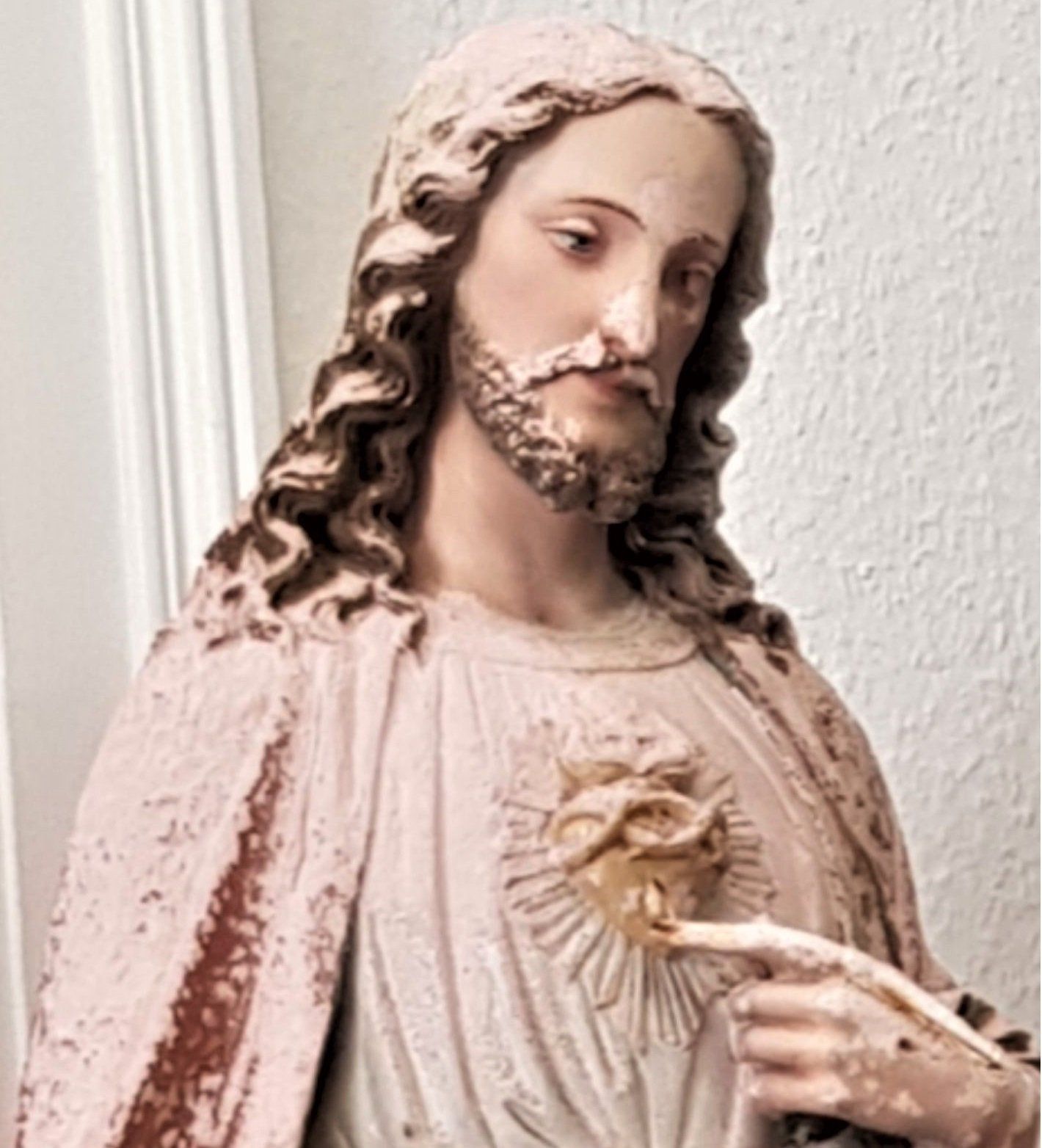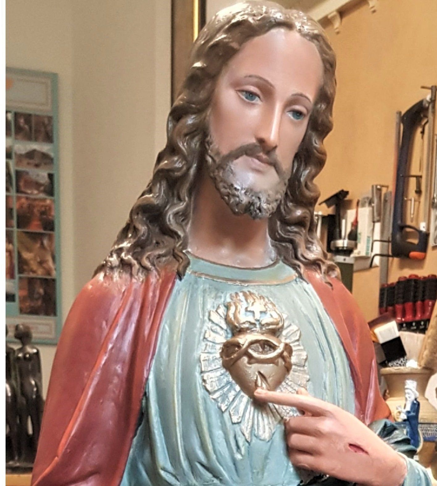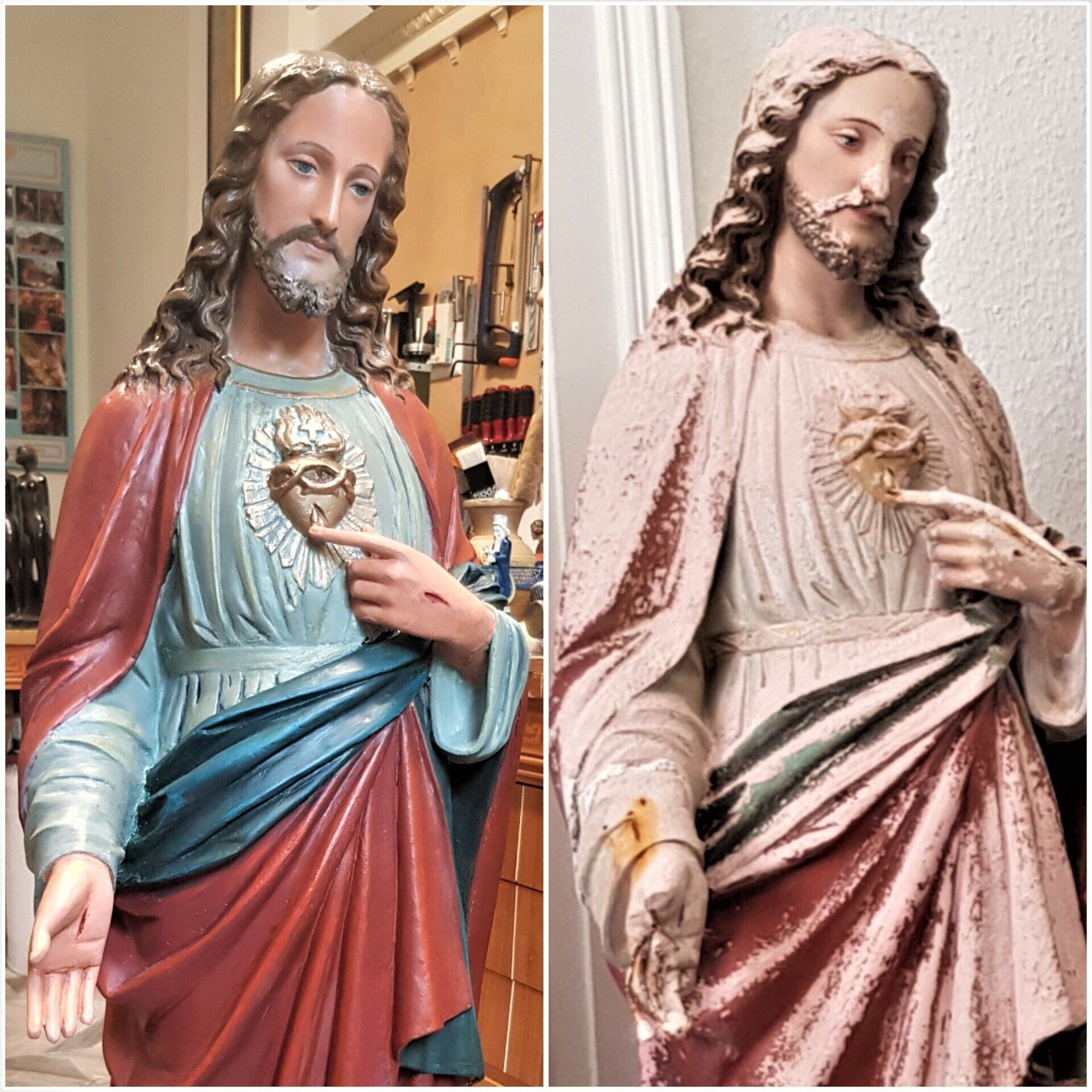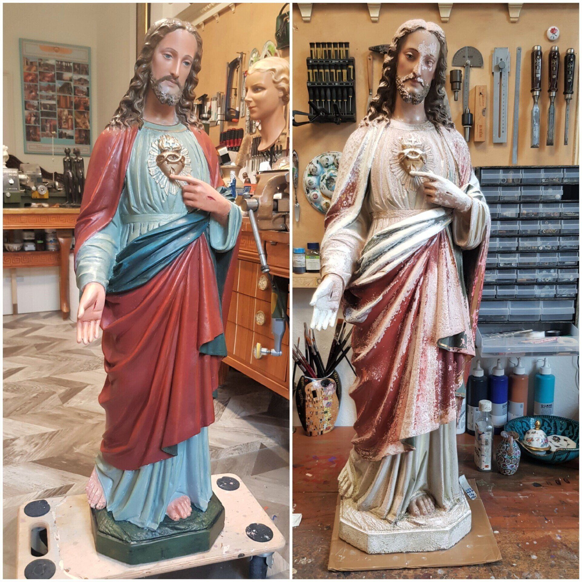 Restoration of a plaster figure of Jesus