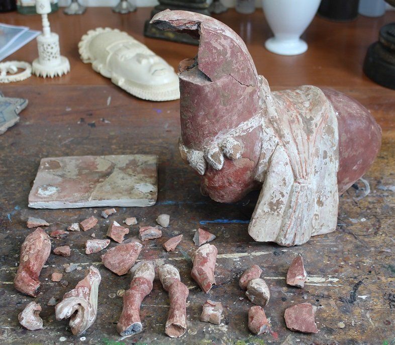La figura de terracota se rompió en muchas partes pequeñas, algunos lugares ya no estaban allí, después de la restauración por parte de nuestro estudio, la sensación de restauración es apenas visible. Observe de cerca las siguientes imágenes. Lea los comentarios de los clientes sobre la restauración de esta propiedad, libro de visitas en la página 47.