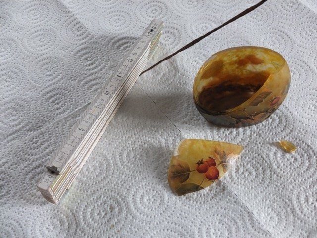 Auch das Erbstück, ein Krug aus dem 18. Jahrhundert war durch den Umzug zu Bruch gegangen. Auch hier haben Sie die Bruchstellen so wunderbar wieder zusammen gefügt, dass dieser Krug heute ein vielbestauntes Erbstück in unserem Haus ist.
