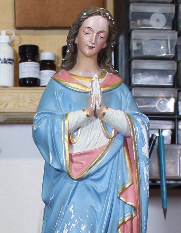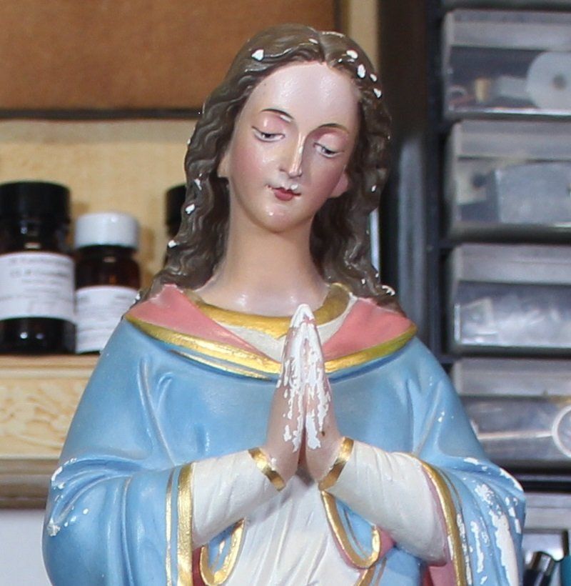 Wir hatten eine Madonna aus Gips ca. 55cm hoch, welche leider sehr mitgenommen war. Zum Teil war etwas abgebrochen und die Farbe war an vielen Stellen abgeplatzt. Durch das Internet sind wir auf die Seite von Arios Atelier gestoßen. Durch die positiven Meldungen im Gästebuch hatten wir uns auch entschlossen unsere Madonna dort restaurieren zu lassen. Zuvor hatten wir Bilder zur Begutachtung verschickt. Wir bekamen ein paar Tage später ein ca. Angebot zur Restauration, da die Madonna ja nur per Bild begutachtet werden konnte. Wir haben die Madonna dann persönlich nach Wiesbaden gebracht und konnten sie zum vereinbarten Zeitpunkt wieder abholen. Die Restauration war wirklich perfekt und die Madonna wie gewünscht im Neuzustand, so dass sie uns jeden Tag mit ihrem Anblick erfreut. Der Kostenvoranschlag konnte auch eingehalten werden. Wir können das Atelier Arios zu 100% weiterempfehlen. Viele Grüße aus Oberhausen Ernst J.
