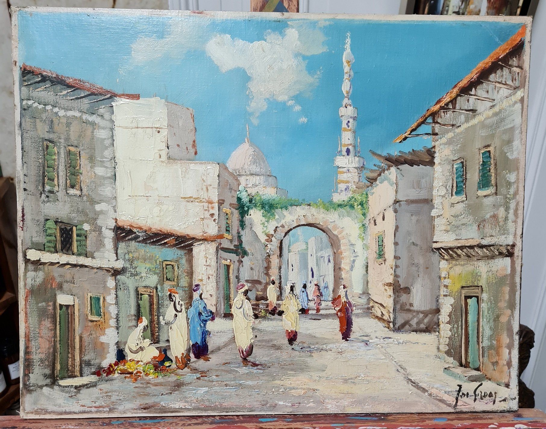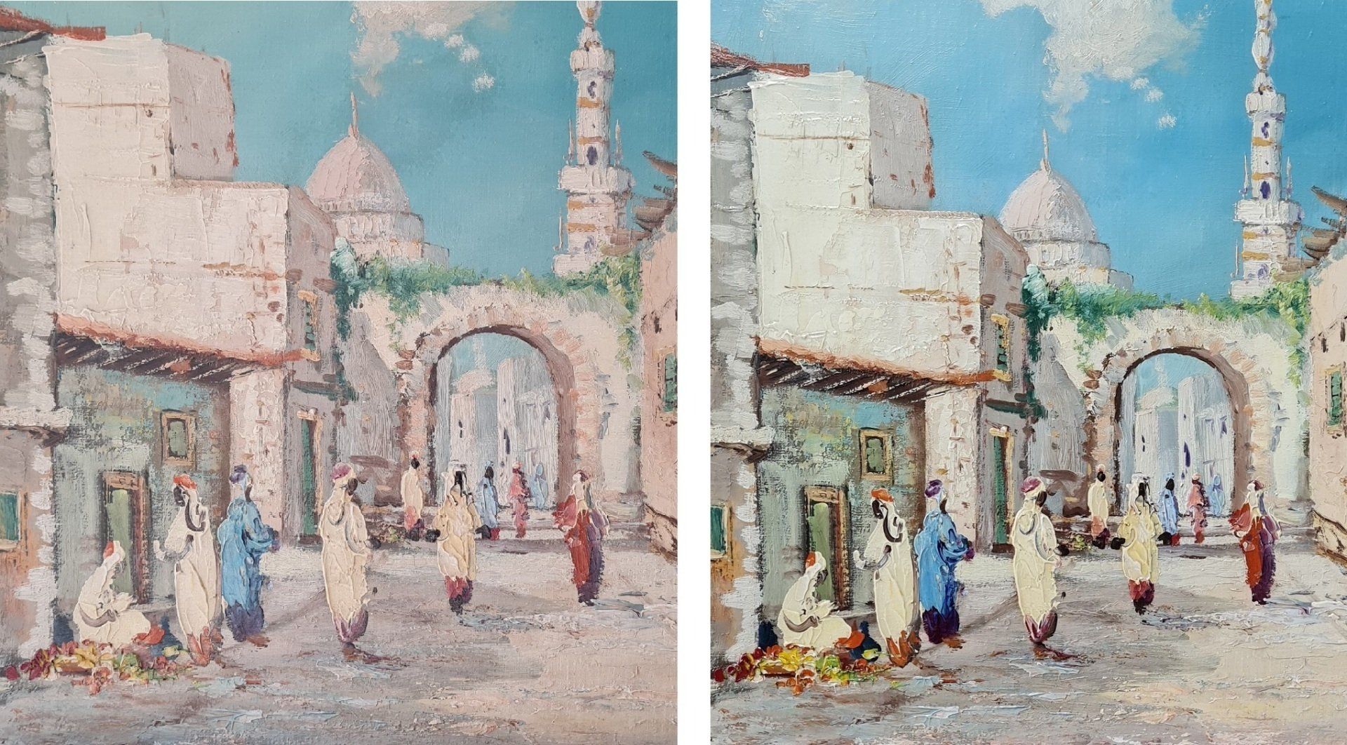 Restauration Ölgemälde Orient, auf Holzgemalt mit Wasserschaden